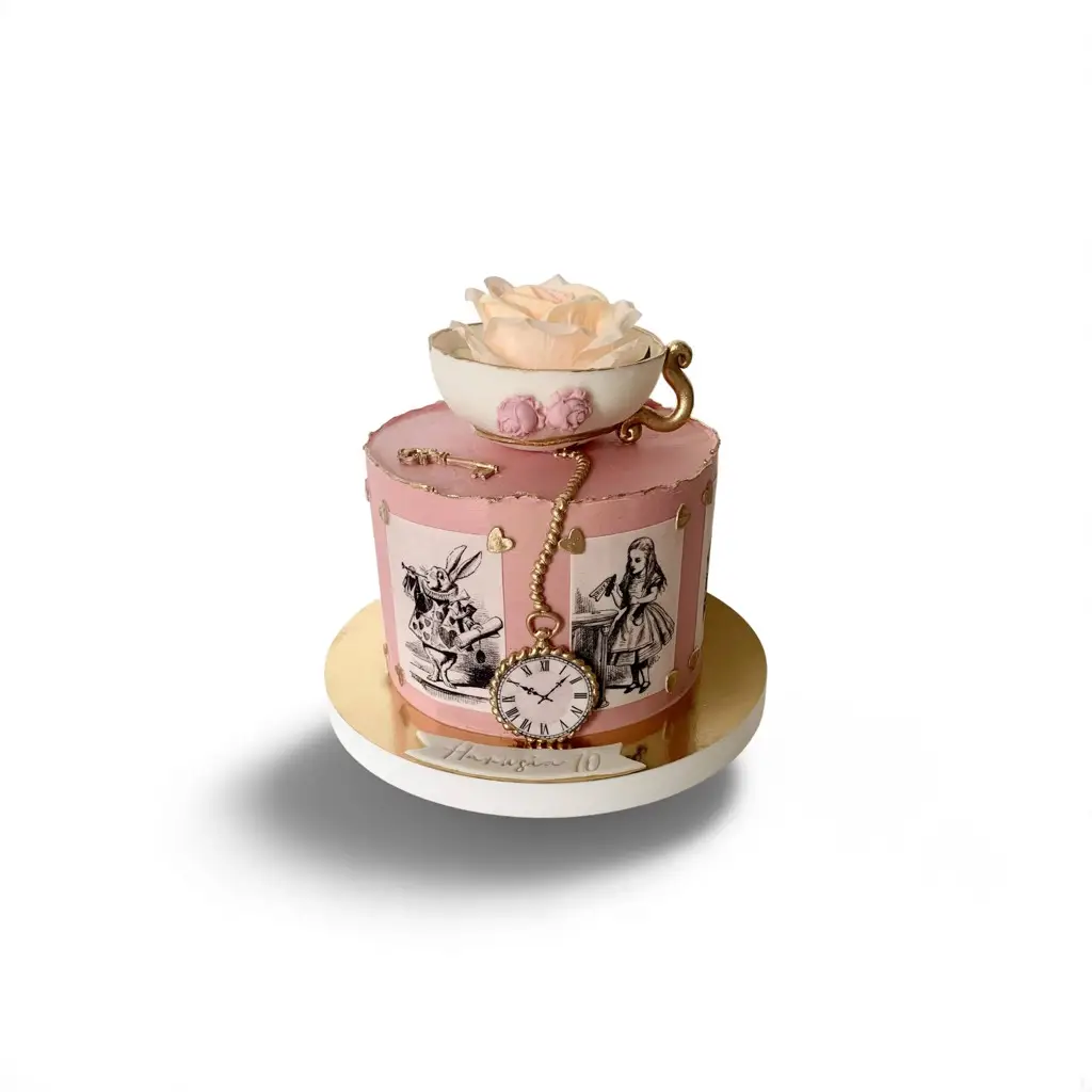 Wyjątkowy tort tematyczny inspirowany magicznym światem „Alicji w Krainie Czarów” autorstwa Lewisa Carrolla.