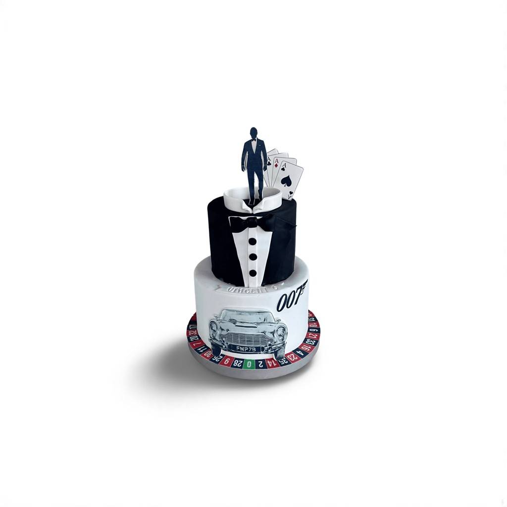 Tort James Bond to doskonały wybór dla fanów kina akcji, elegancji i klasycznych motywów szpiegowskich. Ten tort inspirowany postacią najsłynniejszego agenta 007 zachwyca unikalnym designem, który idealnie oddaje klimat filmów o Bondzie – od smokingu i kart do gry po luksusowy samochód i ruletkę. Idealny na urodziny mężczyzny, wieczór kawalerski, jubileusz lub imprezę tematyczną.