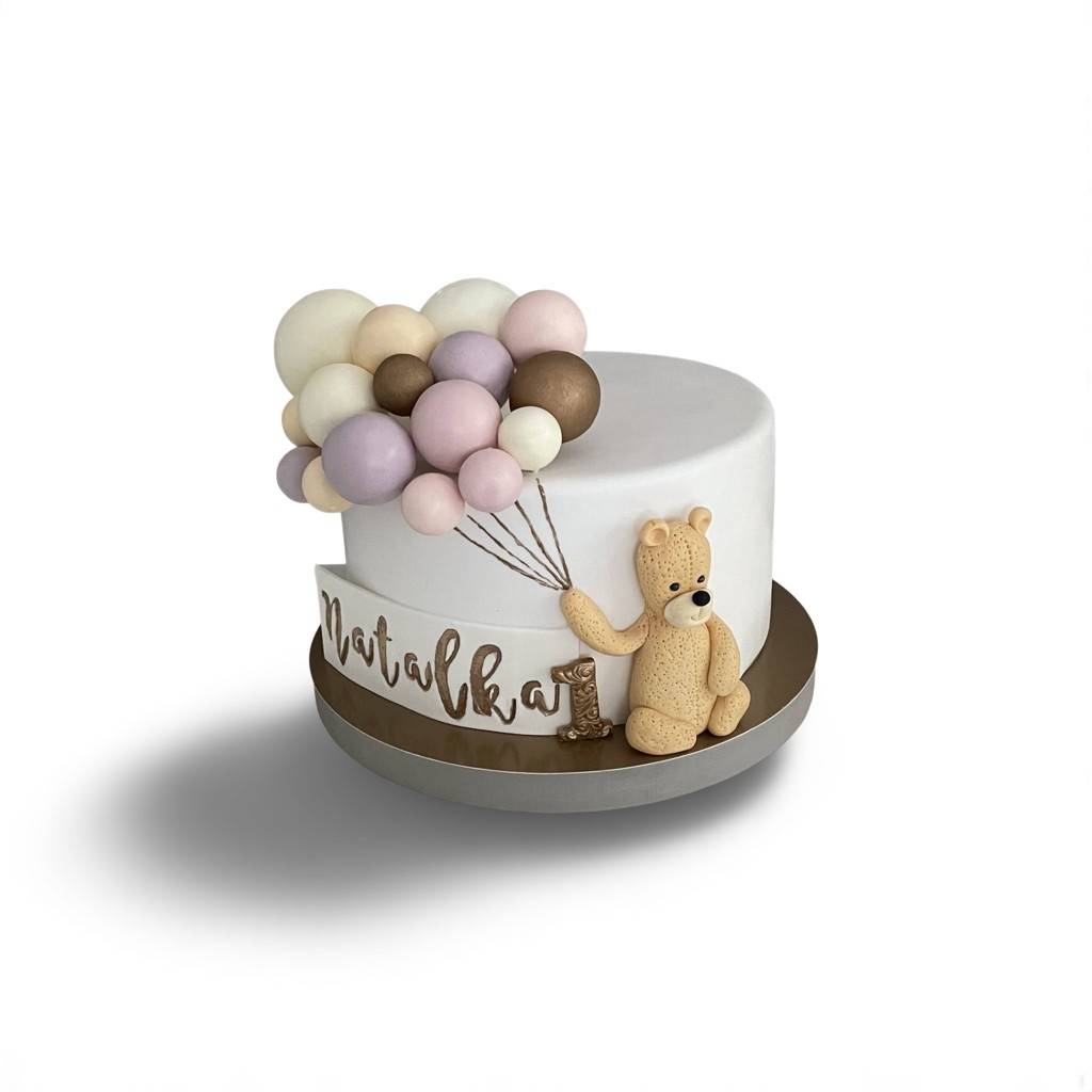 Tort z misiem i balonami
